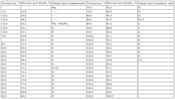 Таблица растворимости аммиачной селитры